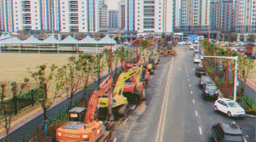 上百臺挖掘機、推土機等施工機械