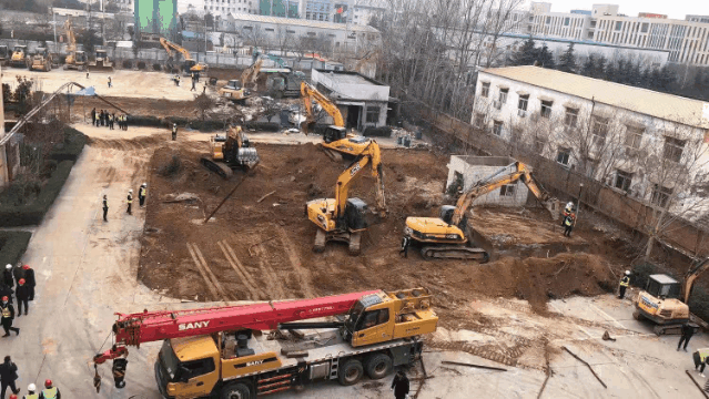 經(jīng)過一天一夜施工,新型冠狀病毒隔離房項目入場挖機41臺,推土機15臺,壓路機4臺,自卸車40臺,327名管理人員和336名工人集結完畢,累計平整全部場地9000平方米,內(nèi)轉土方2500立方米。