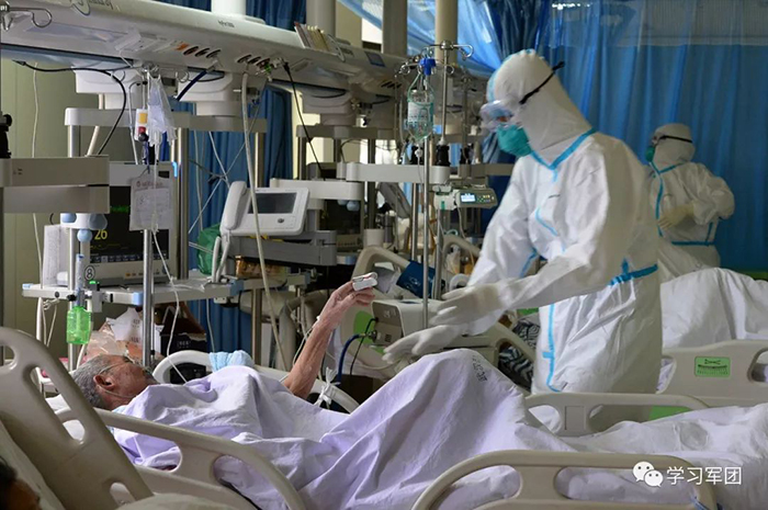 1月27日上午,海軍軍醫(yī)大學(xué)醫(yī)療隊(duì)醫(yī)護(hù)人員在漢口醫(yī)院重癥監(jiān)護(hù)室對(duì)新型冠狀病毒感染的肺炎患者進(jìn)行救治。醫(yī)護(hù)人員密切關(guān)注患者病情,根據(jù)變化調(diào)整輸液速度。解放軍報(bào)記者范顯海攝