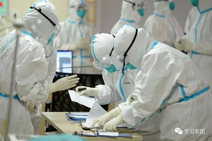 1月27日上午,海軍軍醫(yī)大學(xué)醫(yī)療隊(duì)醫(yī)護(hù)人員在漢口醫(yī)院重癥監(jiān)護(hù)室對(duì)新型冠狀病毒感染的肺炎患者進(jìn)行救治。醫(yī)護(hù)人員認(rèn)真記錄醫(yī)療文書,執(zhí)行醫(yī)囑。解放軍報(bào)記者范顯海攝