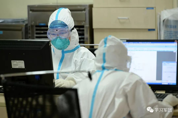 1月27日上午,海軍軍醫(yī)大學(xué)醫(yī)療隊(duì)醫(yī)護(hù)人員在漢口醫(yī)院重癥監(jiān)護(hù)室對(duì)新型冠狀病毒感染的肺炎患者進(jìn)行救治。醫(yī)護(hù)人員查看檢查結(jié)果,評(píng)估患者病情。解放軍報(bào)記者范顯海攝