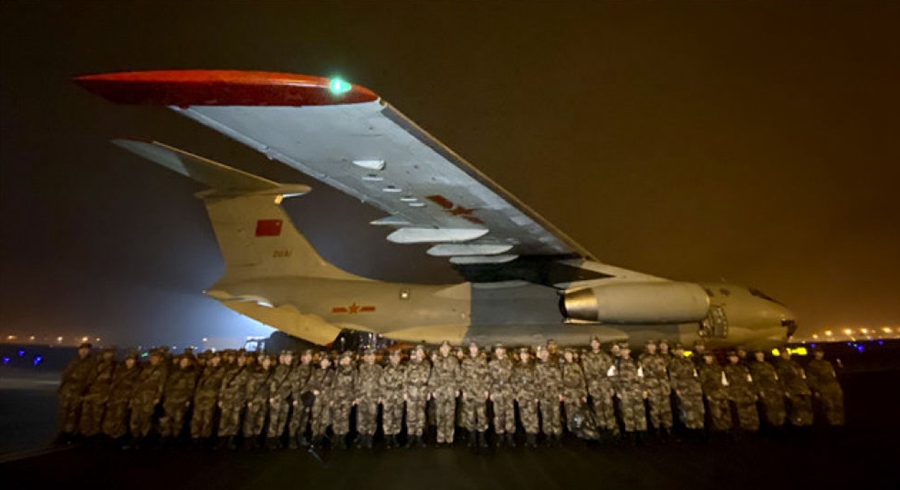 1月24日晚,由陸軍軍醫(yī)大學(xué)抽調(diào)精干醫(yī)務(wù)人員組建的醫(yī)療隊在重慶江北國際機場停機坪集結(jié),準備連夜馳援武漢。 新華社發(fā)
