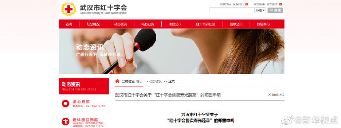關于目前網絡上“山東壽光援助武漢350噸蔬菜,武漢市紅十字通過超市低價售賣”一事,武漢市紅十字會發(fā)表申明,詳情如下↓(記者王鵬) ????