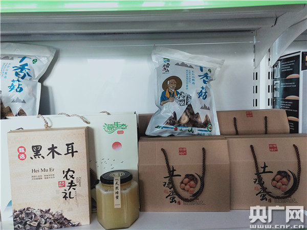 于衍來(lái)將村民的農(nóng)副產(chǎn)品進(jìn)行包裝售賣(記者 王啟慧 攝)