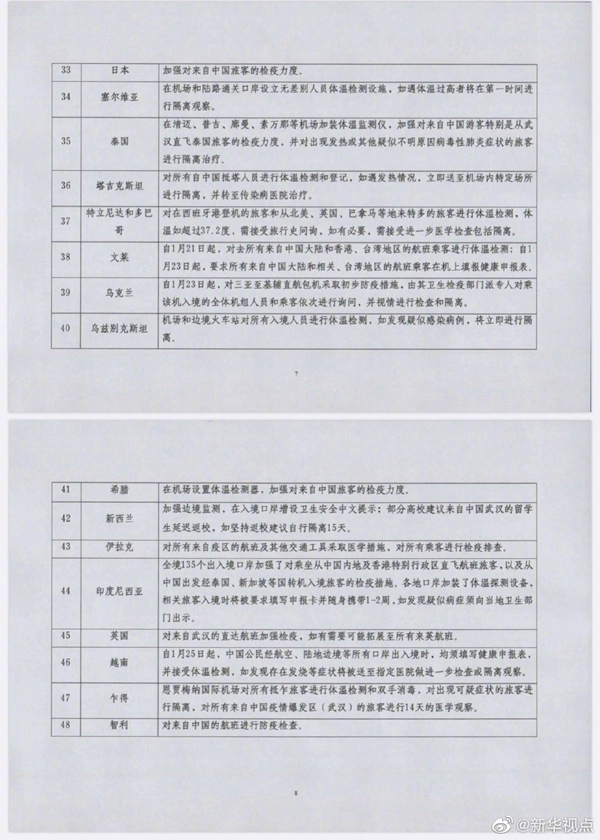 據(jù)外交部“領事直通車”微信公眾號消息,為防控新型冠狀病毒感染的肺炎疫情,部分國家已在口岸采取了相應的入境管制措施(詳見附表,供參考)。外交部領事司提醒中國公民根據(jù)自身健康狀況合理安排出行,詳細了解并遵守目的地國有關入境規(guī)定。外交部全球領事保護與服務應急熱線:+86-10-12308,+86-10-59913991。(記者成欣)?