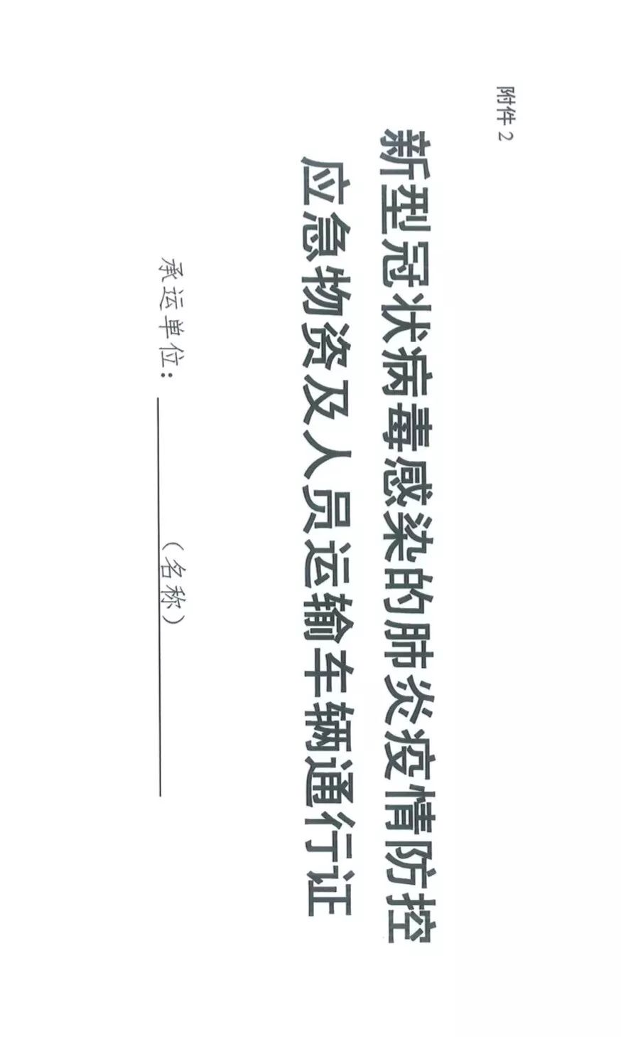 2 《新型冠狀病毒感染的肺炎疫情防控物資及人員運輸車輛通行證》式樣