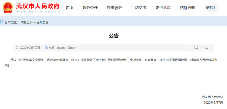 武漢中心醫(yī)院李文亮醫(yī)生,因感染新型肺炎,經(jīng)全力搶救無效不幸去世。我們深表哀悼,萬分惋惜!對其堅(jiān)守一線抗擊疫情表示敬意,對其家人表示誠摯慰問!