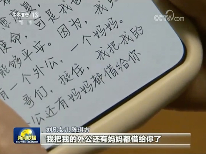劉凡女兒 陳琪方:當我得知我年邁的外公也在前線時,眼眶早已通紅。還有我的媽媽,他們都說自己是黨員會沖上前線。
