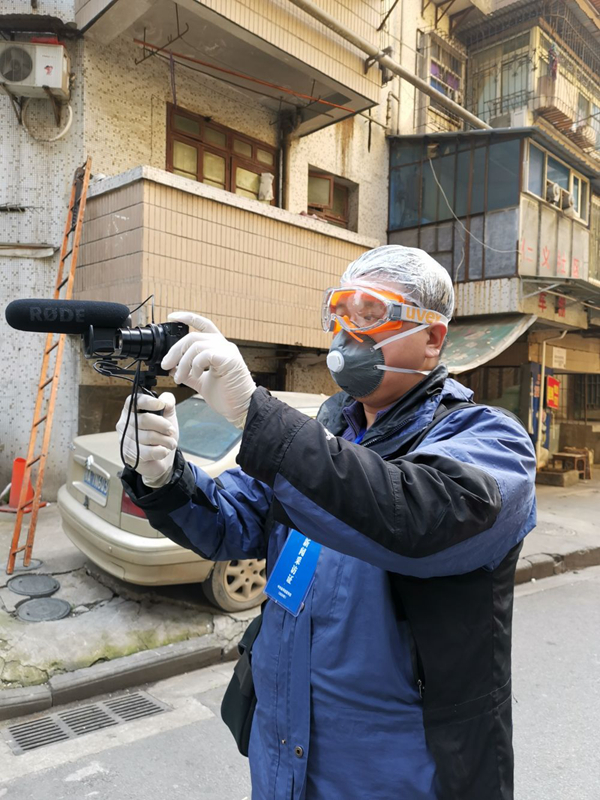 2月5日,才揚(yáng)在武漢采訪時(shí)的工作照。