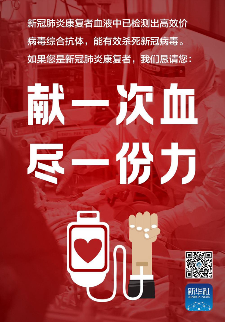 張定宇院長在發(fā)布會上發(fā)出呼吁后,社會廣泛關(guān)注。13日晚,中國生物技術(shù)股份有限公司、武漢市血液中心也聯(lián)合向新冠肺炎康復(fù)者發(fā)出獻(xiàn)血倡議書,并在湖北省人民醫(yī)院開放愛心獻(xiàn)血屋。目前,已有不少康復(fù)者來電咨詢。(記者 李勁峰 侯文坤)