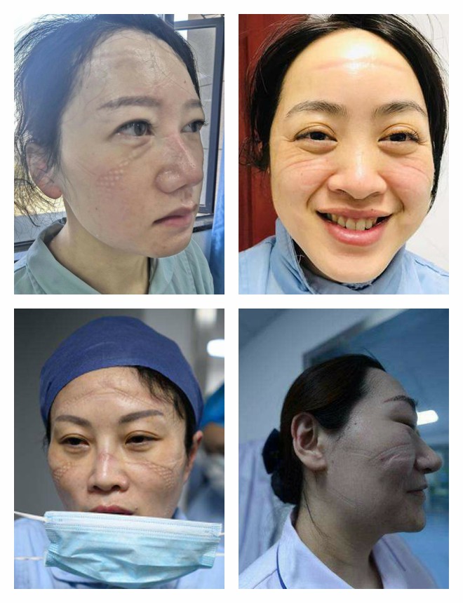 醫(yī)護(hù)人員臉上的勒痕(劉麗為左一)