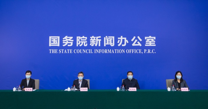 三位中央指導(dǎo)組成員出席國新辦發(fā)布會。新華社記者肖藝九攝。