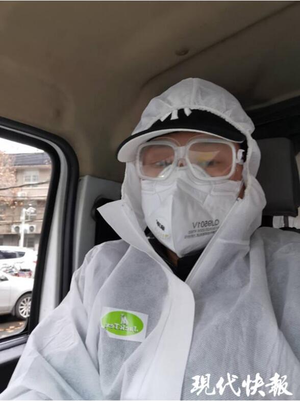 因為當時救護車不夠用,街道臨時征用了兩輛面包車,把它改裝了一下。車內(nèi)放的都是板凳,開車就要很小心。而且,戴著護目鏡,經(jīng)常有霧氣看不清,為了自身安全,我要戴護目鏡,但是為了車輛安全,又不能戴護目鏡,所以有時候也是很糾結。