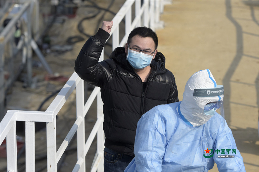 2月4日,萬(wàn)先生充滿信心走進(jìn)火神山醫(yī)院。中國(guó)軍網(wǎng)記者范顯海 攝