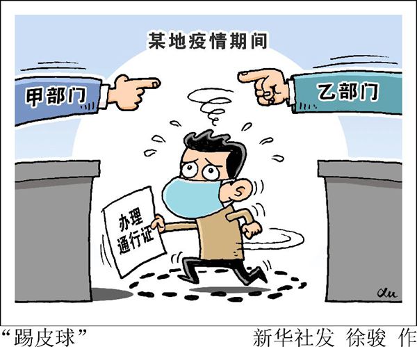 ——遭遇“踢皮球”。春節(jié)探親的王先生,因疫情被困在重慶奉節(jié)縣近一個(gè)月。最近單位要求復(fù)工,為辦回家的出行證,他跑了6趟村鎮(zhèn)多個(gè)部門,打了30多個(gè)電話,不是找不到人就是一問三不知,始終未辦成證明?!版?zhèn)上叫我去村里,村里又讓我去鎮(zhèn)上,推來推去?!?/p>