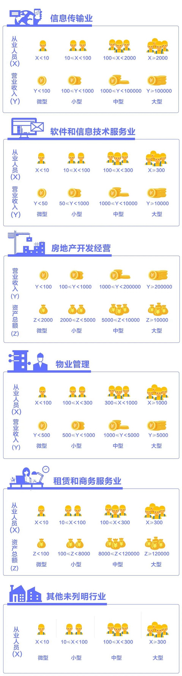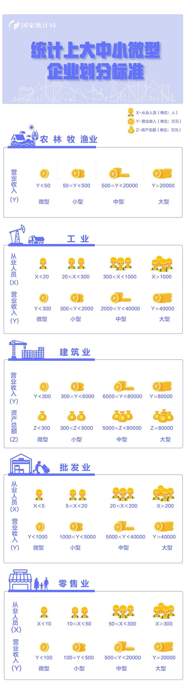 該辦法按照行業(yè)門類、大類、中類和組合類別,依據(jù)從業(yè)人員、營(yíng)業(yè)收入、資產(chǎn)總額等指標(biāo)或替代指標(biāo),將我國的企業(yè)劃分為大型、中型、小型、微型等四種類型。