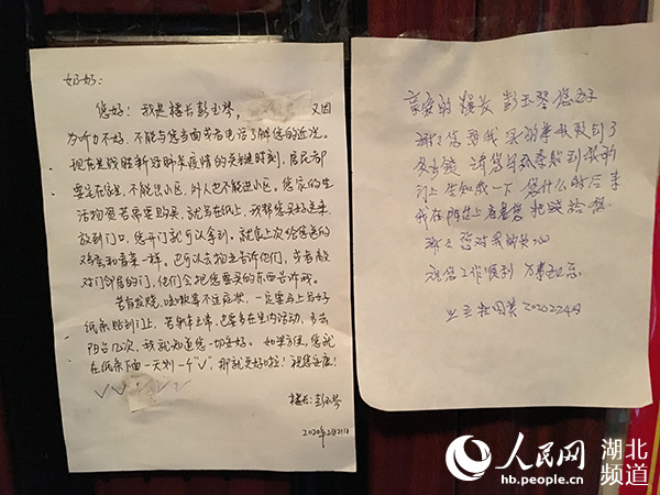 “這是我送給您的,不要錢!” 2月24日下午,湖北省宜昌市夷陵區(qū)小溪塔街道轉(zhuǎn)崗黨員彭玉琴來(lái)到金鳳朝陽(yáng)小區(qū)4棟4樓的一家住戶門前,查看了門邊留言條上的內(nèi)容,掏出筆寫下了這句溫馨留言。