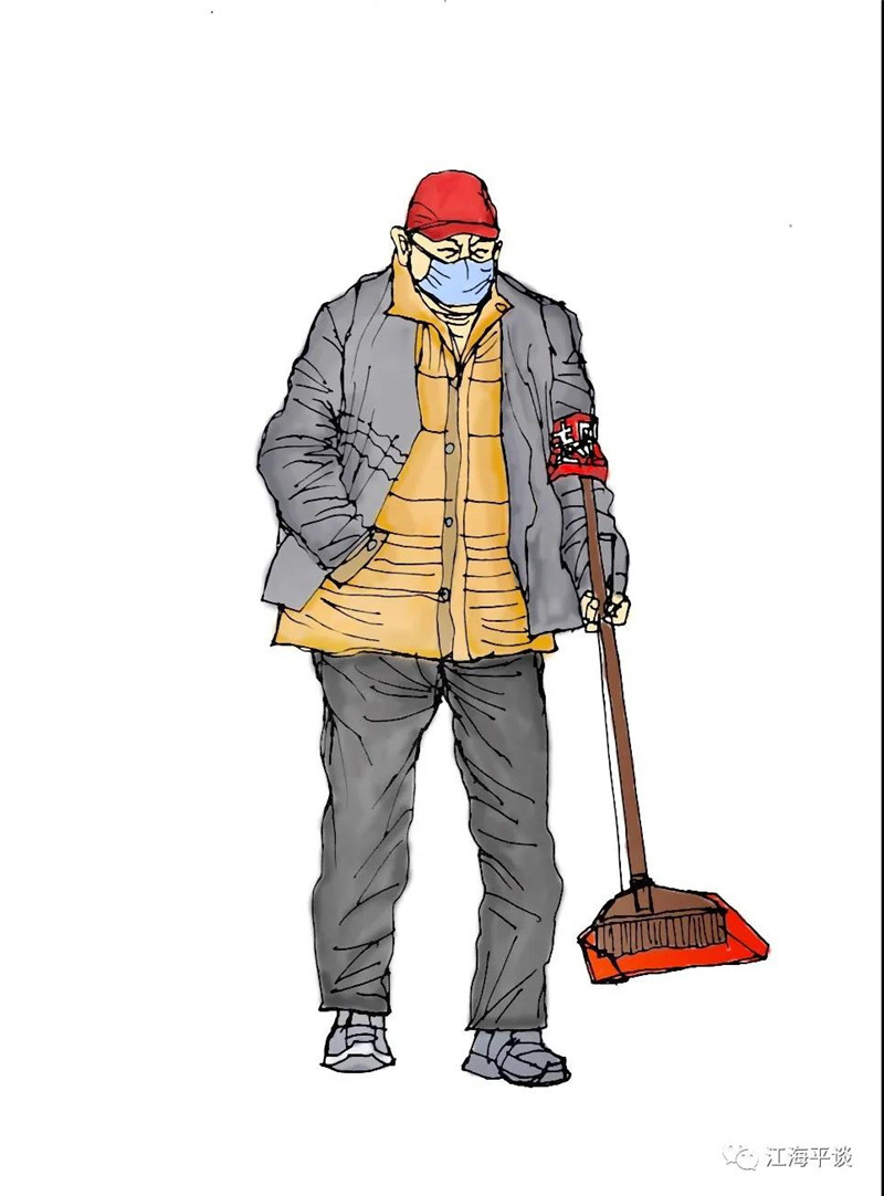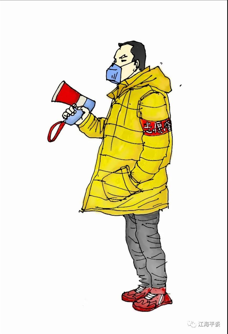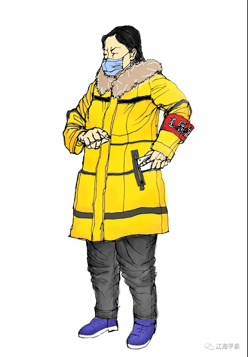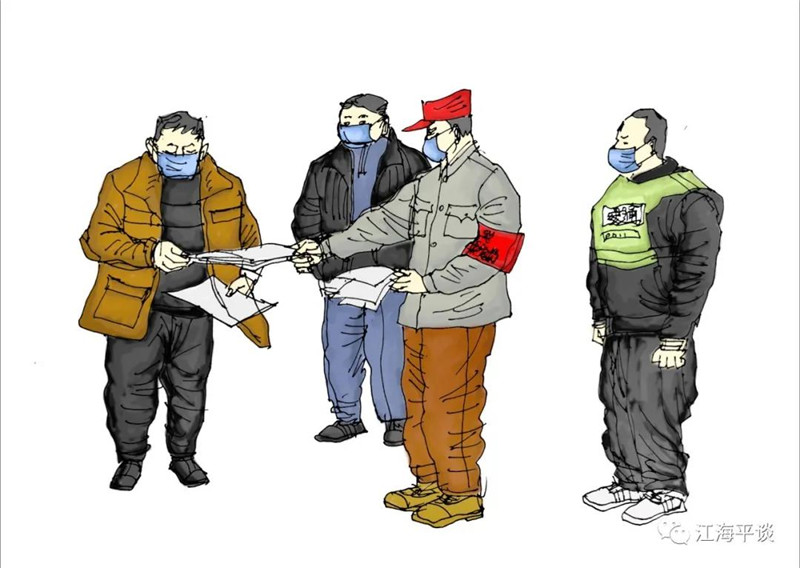 我用速寫的形式,把自己每天看到聽到的最動(dòng)人的故事或場(chǎng)景記錄下來,組成了一幅幅“防控抗疫”的群英圖譜,特別是那些奮戰(zhàn)在一線的廣大醫(yī)務(wù)工作者以及在街頭巷尾,社區(qū)民宅忘我工作、無私奉獻(xiàn)的街道干部和志愿者是我描繪的主要對(duì)象。雖然,他們都是普普通通的人,但他們都做出了不平凡的事。他們是這個(gè)時(shí)代真正的英雄,也是這個(gè)時(shí)代最可愛的人!