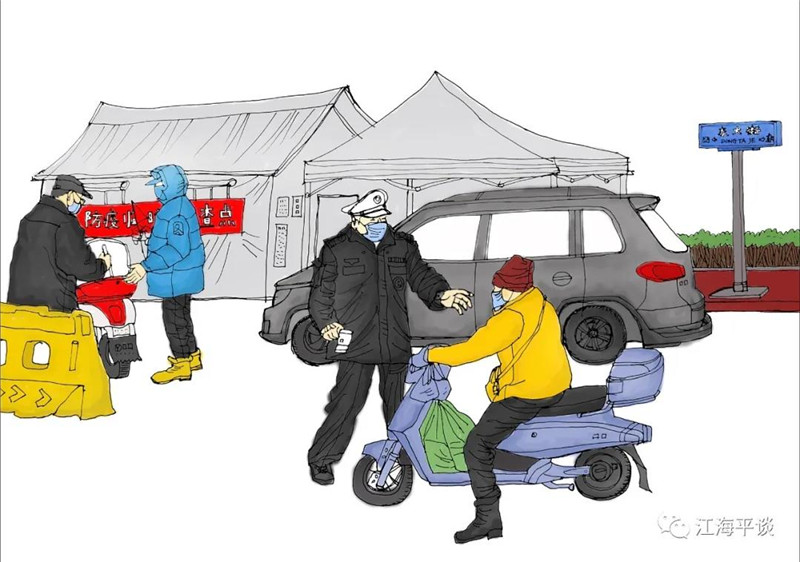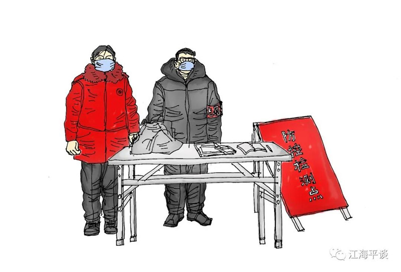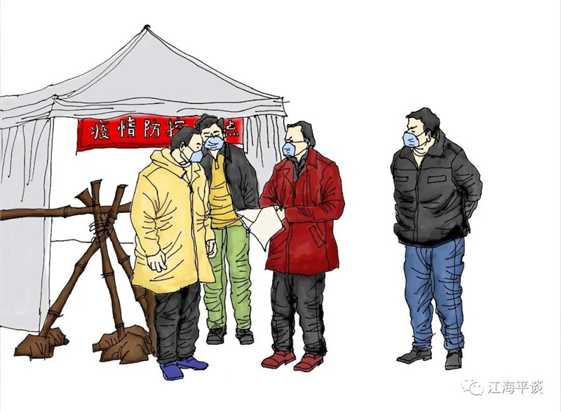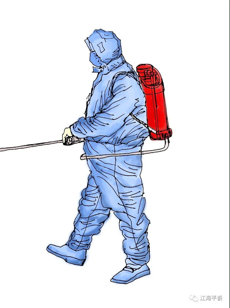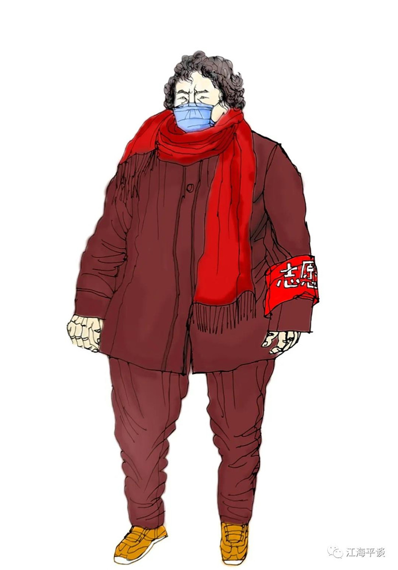 我用速寫的形式,把自己每天看到聽到的最動(dòng)人的故事或場(chǎng)景記錄下來,組成了一幅幅“防控抗疫”的群英圖譜,特別是那些奮戰(zhàn)在一線的廣大醫(yī)務(wù)工作者以及在街頭巷尾,社區(qū)民宅忘我工作、無私奉獻(xiàn)的街道干部和志愿者是我描繪的主要對(duì)象。雖然,他們都是普普通通的人,但他們都做出了不平凡的事。他們是這個(gè)時(shí)代真正的英雄,也是這個(gè)時(shí)代最可愛的人!