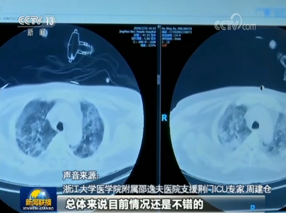 聲音來(lái)源:浙江大學(xué)醫(yī)學(xué)院附屬邵逸夫醫(yī)院支援荊門ICU專家 周建倉(cāng):左邊是26號(hào)的,右邊是23號(hào)的,肺部吸收還是比較明顯,總體來(lái)說(shuō)目前情況還不錯(cuò)。