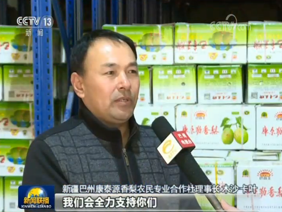 新疆巴州康泰源香梨農(nóng)民專業(yè)合作社理事長(zhǎng) 木沙?卡葉:我們與湖北心連心,我們會(huì)全力支持你們。