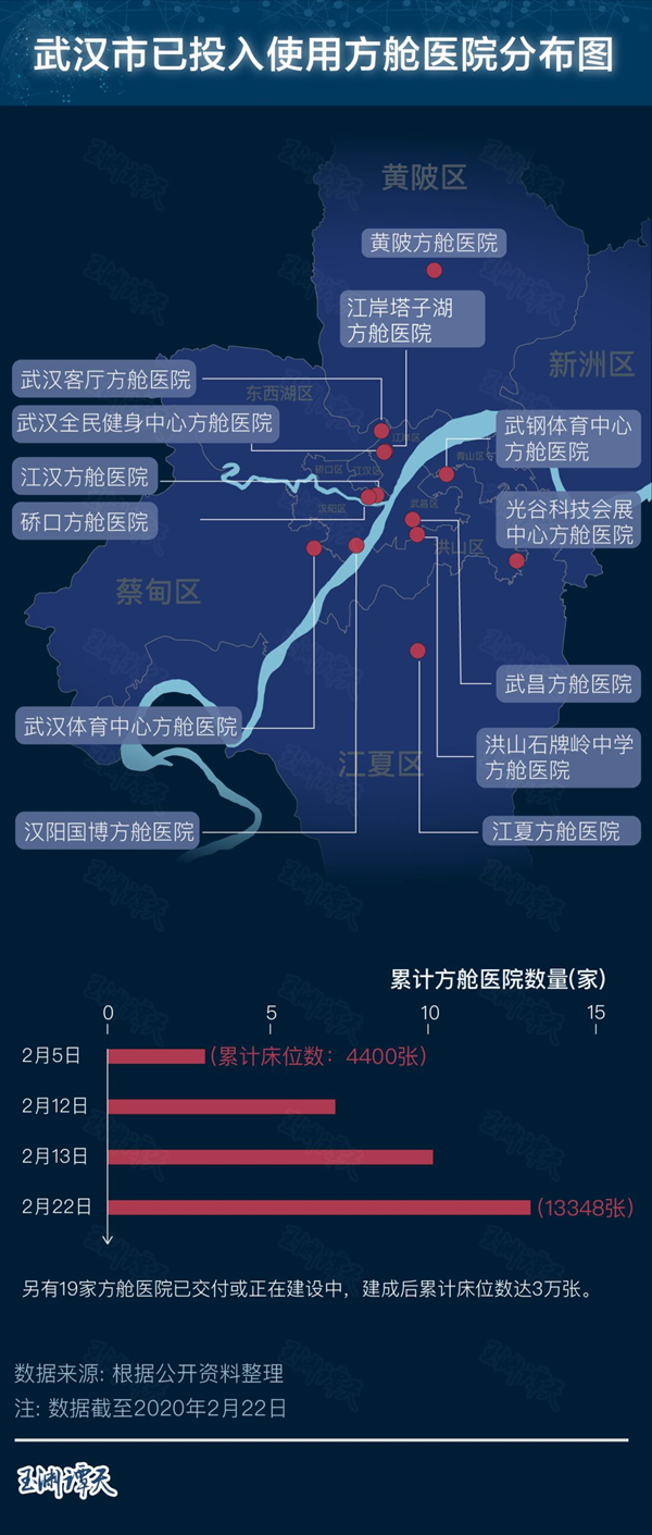 不到1個(gè)月,武漢新建了16家方艙醫(yī)院,開放床位13000多張?,F(xiàn)在,方艙空余床位有5600張。