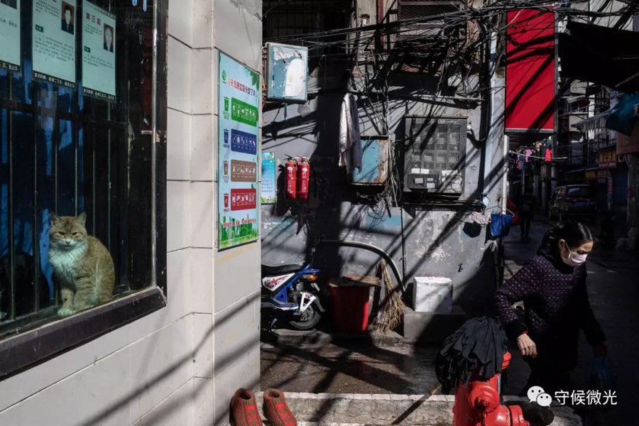2月16日,湖北省武漢市,民生社區(qū)花樓街,趁著晴天,不少小區(qū)的居民都走出家門,或是采購物資,或是曬曬太陽。中國青年報 李雋輝/攝