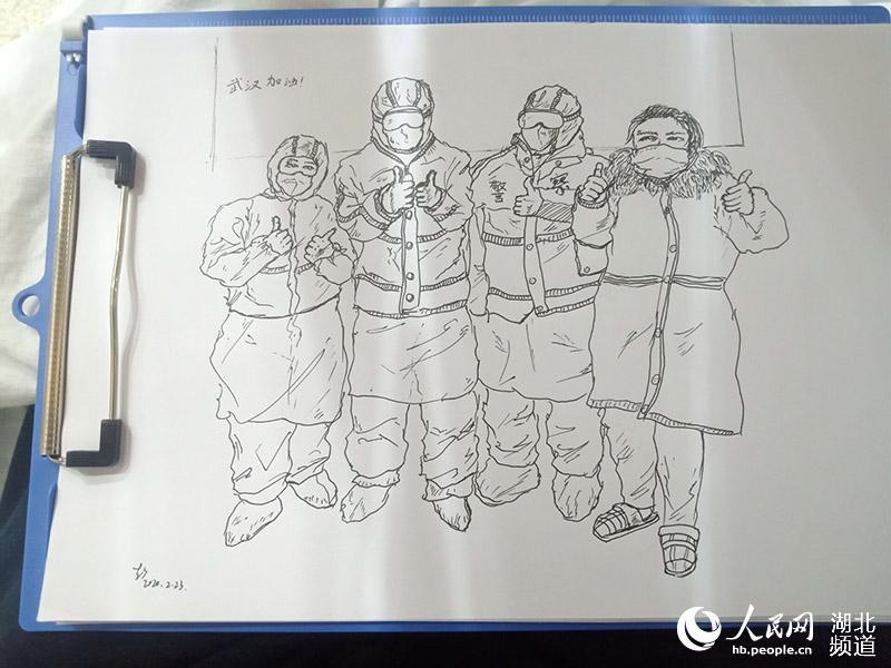 2月27日,來自貴州遵義的支援湖北醫(yī)療隊(duì)護(hù)士長李蘭收到了患者送給她的一份珍貴禮物——一幅素描畫,畫中的李蘭正在悉心照顧病患,穿著防護(hù)服的身影,充滿著溫暖的力量。