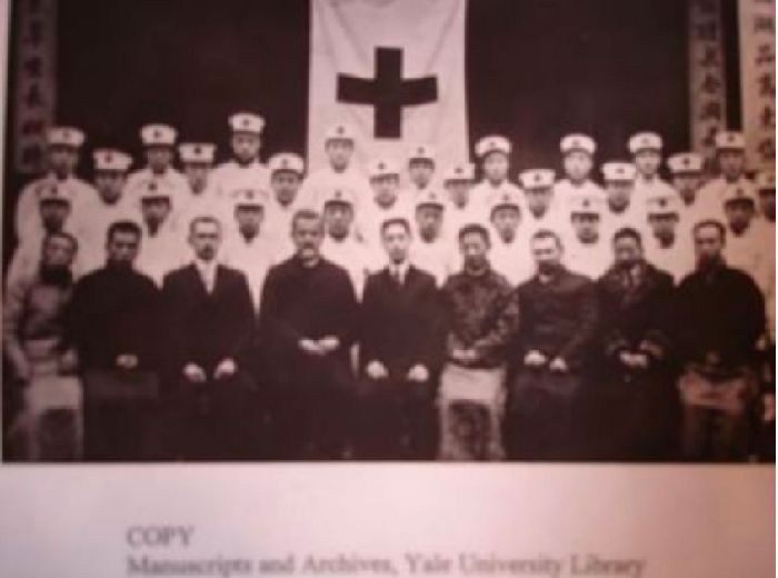 參加京漢鐵路鼠疫防治的同仁合影,前排左起第五為顏福慶(原件藏耶魯大學(xué)圖書館)