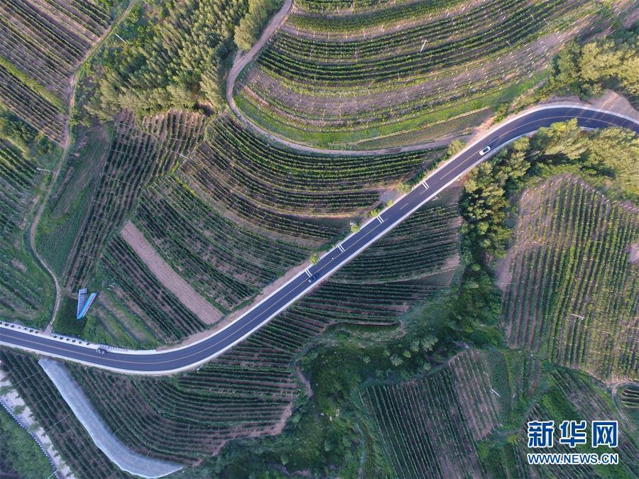 這是赤峰市喀喇沁旗河南街道馬鞍山村景色(無人機拍攝)。新華社記者 劉磊 攝