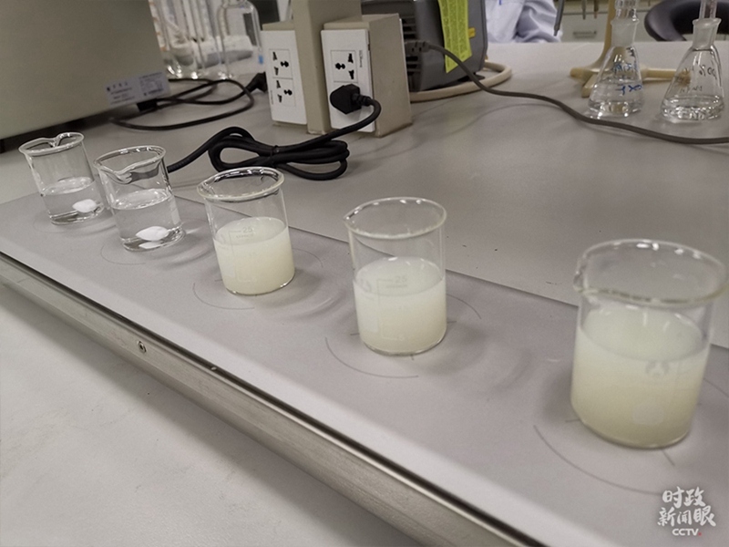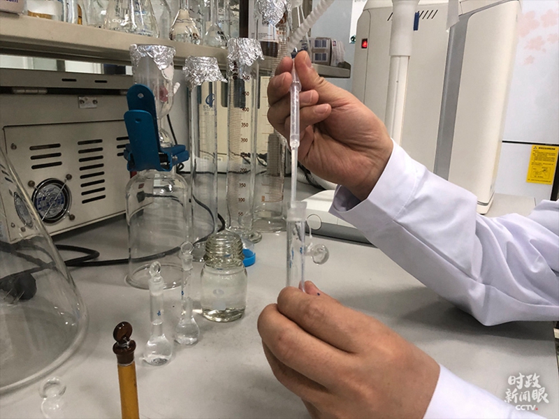 這是實(shí)驗(yàn)過程中的定容操作。(總臺(tái)央視記者彭漢明拍攝)
