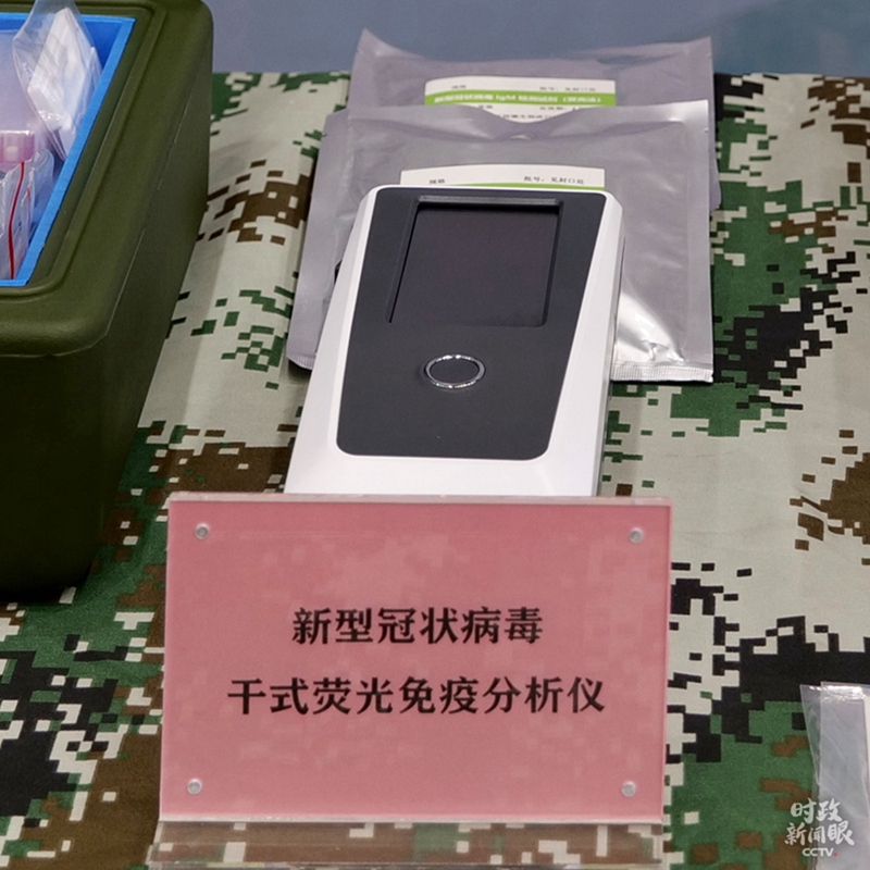 干式熒光免疫分析儀是配合上圖中抗體檢測(cè)試劑盒使用的。(總臺(tái)央視記者彭漢明拍攝)