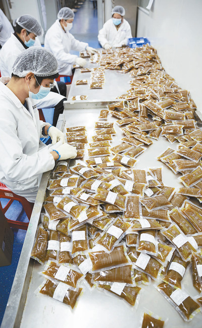 3月2日,湖北武漢一家中藥公司,工人正在為灌裝好的中藥貼上標簽。據悉,該公司在疫情期間,按照國家衛(wèi)生健康委辦公廳和國家中醫(yī)藥管理局辦公室聯合印發(fā)的《新型冠狀病毒肺炎診療方案(試行第六版)》中推薦的藥方,為武漢市7家醫(yī)院、10個方艙醫(yī)院等單位生產、煎煮和配送中藥湯劑。記者 張武軍攝