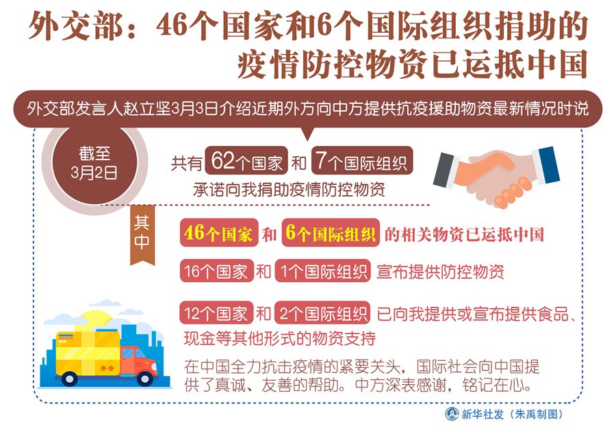 圖表:外交部:46個(gè)國(guó)家和6個(gè)國(guó)際組織捐助的疫情防控物資已運(yùn)抵中國(guó) 新華社發(fā) 朱禹 制圖