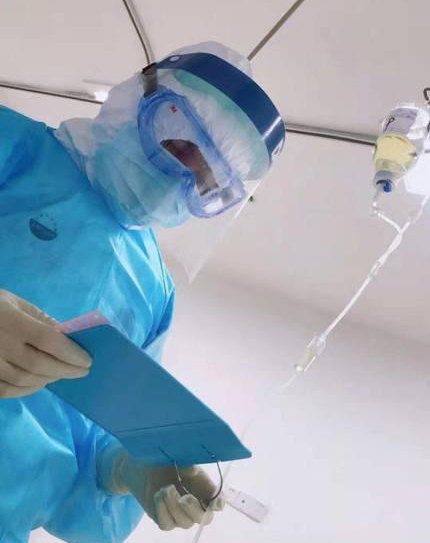 調(diào)整狀態(tài)、做好防護(hù)、熟悉工作,張雙圓穩(wěn)扎穩(wěn)打,很快就恢復(fù)了斗志。重癥病房里那個(gè)年輕戰(zhàn)士的身影隨處可見(jiàn)。穿著厚重的防護(hù)設(shè)備為患者穿刺、抽血、輸液、靜推、俯臥位,他不怕累。為氣管插管患者霧化吸痰時(shí)被呼吸機(jī)管道內(nèi)的異物噴濺到,他不畏懼??吹交颊弑徊《菊勰サ较敕艞墸唤邮?。