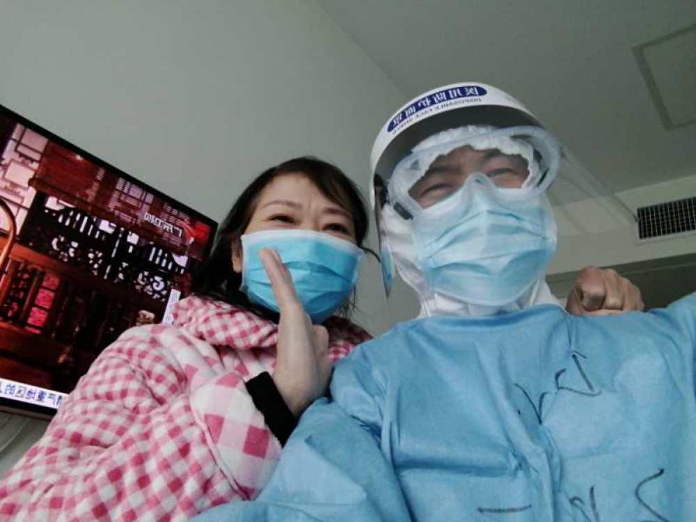 圖為北醫(yī)三院援湖北醫(yī)療隊(duì)劉慧強(qiáng)和患者在一起。