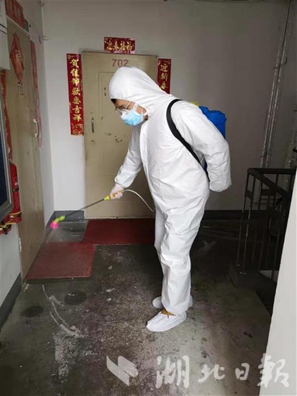 省電社區(qū)下轄的5個小區(qū)中,最大的是徐東嘉園,共15棟樓約700余戶居民,是社區(qū)新冠肺炎確診人數(shù)、疑似人數(shù)最多的小區(qū)。報到第一天,他主動認領(lǐng)徐東嘉園的消殺任務:“我年輕、身體好,最重的活交給我就對了!”
