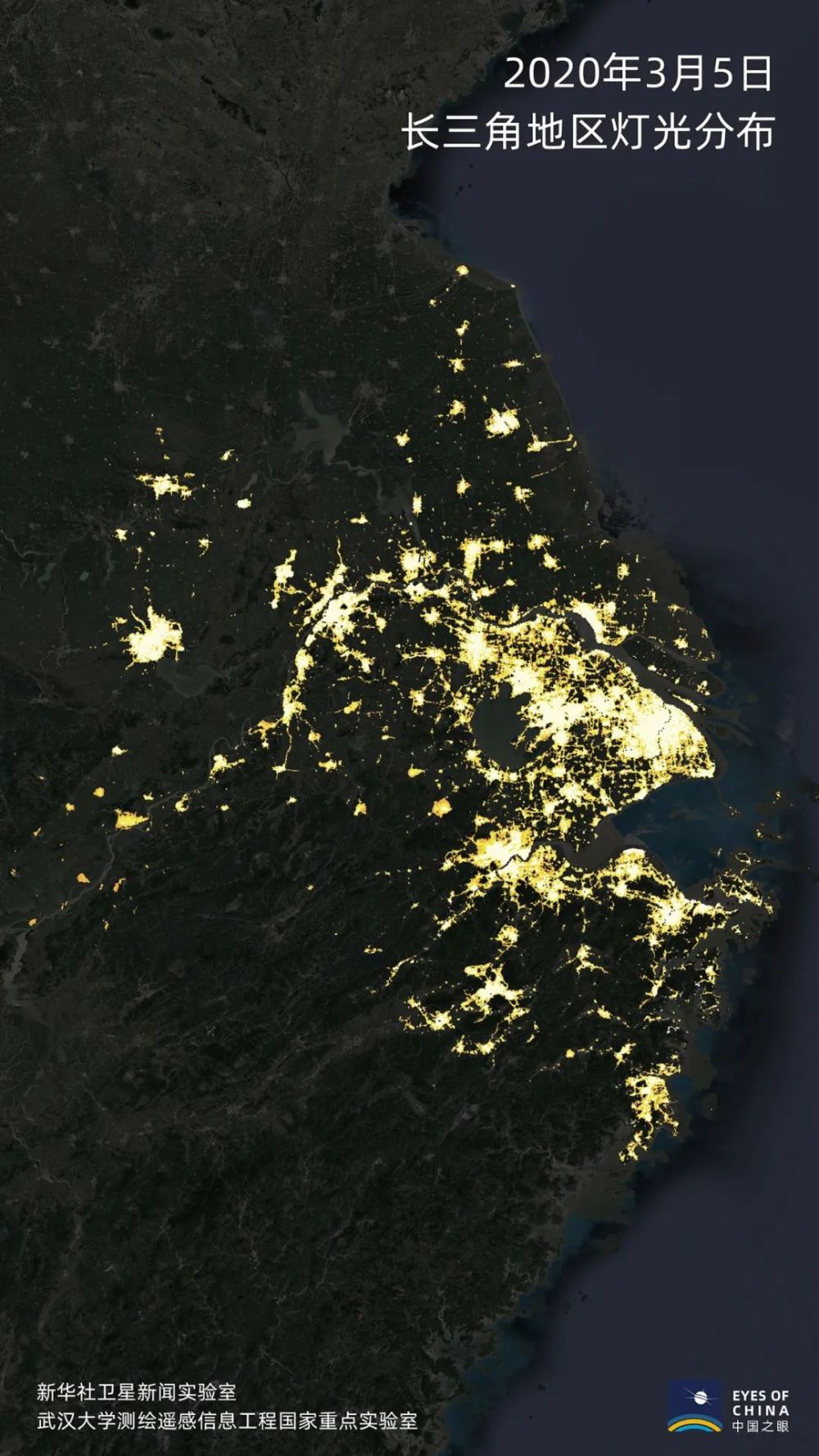 這是長(zhǎng)三角地區(qū)3月5日夜間燈光分布情況。