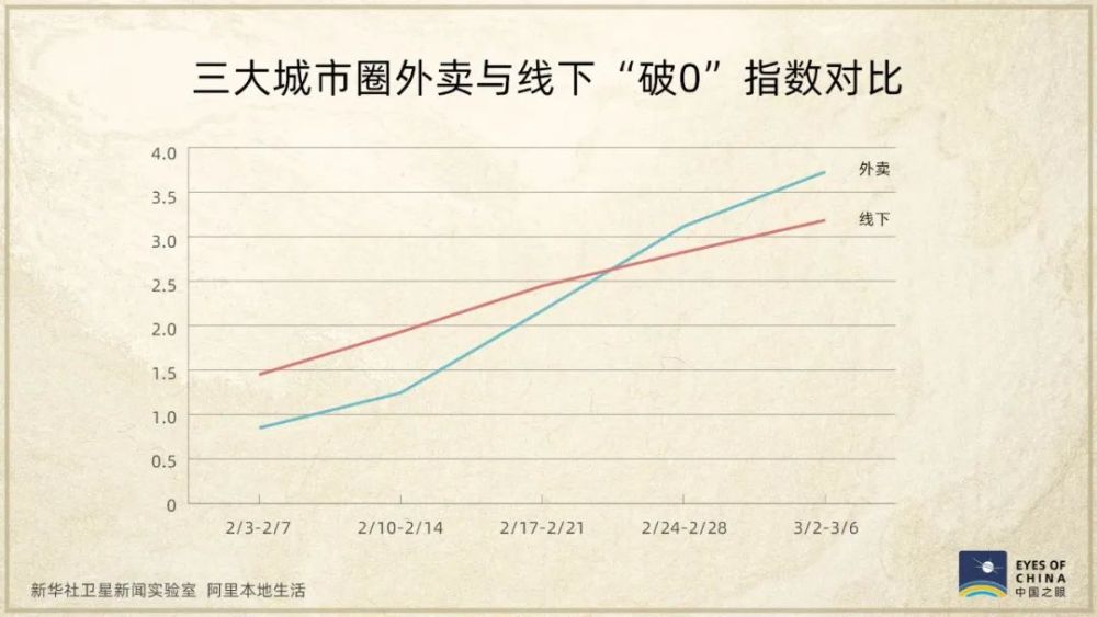 “破0”指數(shù),是根據(jù)商家恢復(fù)營(yíng)業(yè)獲得首筆收入、復(fù)工后的持續(xù)營(yíng)業(yè)時(shí)間等計(jì)算得出,這兩張圖呈現(xiàn)出,在三大城市圈,復(fù)工復(fù)產(chǎn)并獲得收入的商家不斷增多。