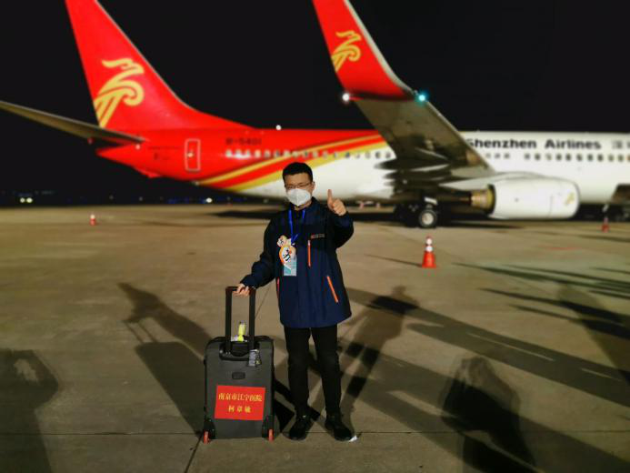 柯章敏所在的醫(yī)療隊負責援助湖北江夏區(qū)第一人民醫(yī)院,他說,讓越來越多的患者經(jīng)過治療逐漸康復,是他作為一名醫(yī)生存在的意義?!拔仪逦赜浀茫瑒偨庸懿^(qū)時,一位50多歲的新冠肺炎患者一說話就無法正常呼吸。在征得本人和家屬同意后,我們對他使用了無創(chuàng)輔助通氣?!笨抡旅粽f,剛上呼吸機時,患者無法配合,他就一直陪在病人身邊,反復解釋該方案的意義。“經(jīng)過積極治療,他的病情終于慢慢恢復了。轉眼間,江夏區(qū)第一人民醫(yī)院新冠肺炎病例已經(jīng)清零,我們也到了該說再見的時候。”