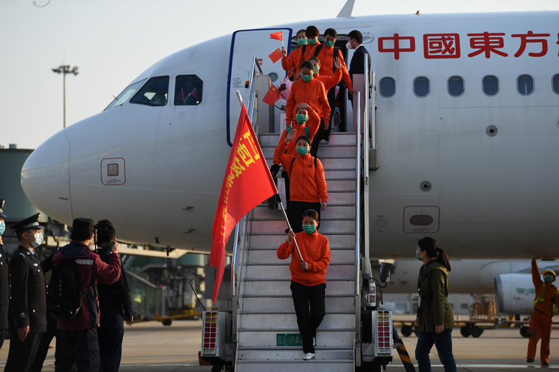 3月19日18時許,江西第二批援助武漢醫(yī)療隊(江西援助武漢醫(yī)療護理隊)在圓滿完成武漢新冠肺炎患者醫(yī)療救治任務后,平安返贛。時雨攝