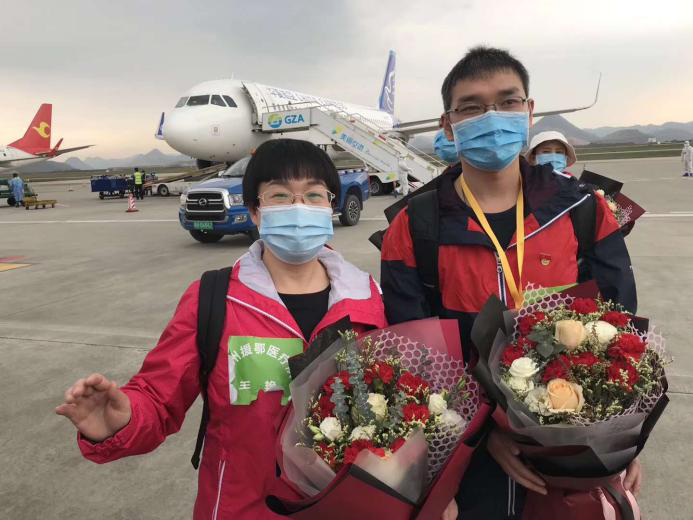 3月6日,漢江方艙醫(yī)院正式休艙;3月17日,王艷所在的醫(yī)療隊接到了可以撤離的通知。3月18日中午11點,乘坐“勝利號”航班返黔的王艷平安到達貴陽龍洞堡機場。家鄉(xiāng)人民的熱情歡迎讓她數(shù)次感動落淚,“病毒雖然可怕,但患者的信任和家鄉(xiāng)的支持,就是我們的能量來源。”
