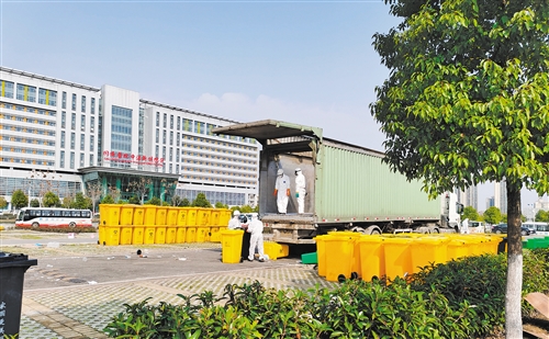 在武漢江夏第一人民醫(yī)院,醫(yī)療垃圾被放入寫有“醫(yī)療廢物”標(biāo)識的黃色垃圾桶,然后從醫(yī)院的垃圾出口運(yùn)出,送入醫(yī)療廢物應(yīng)急處理系統(tǒng)?!八嗅t(yī)療廢物桶在出醫(yī)院前先消毒,運(yùn)出后再消毒。”據(jù)醫(yī)療垃圾應(yīng)急處理點(diǎn)負(fù)責(zé)人趙燕妮介紹,平時(shí)從病區(qū)收集的醫(yī)療廢物會被送到醫(yī)院的暫存庫,暫存庫有處置中心,由專業(yè)團(tuán)隊(duì)運(yùn)到處置點(diǎn)處理。但武漢現(xiàn)在的運(yùn)輸能力和終端處置能力吃緊。在這種情況下,病區(qū)收集的醫(yī)療垃圾,通過醫(yī)療廢物應(yīng)急處理系統(tǒng)就地實(shí)現(xiàn)無害化處理。