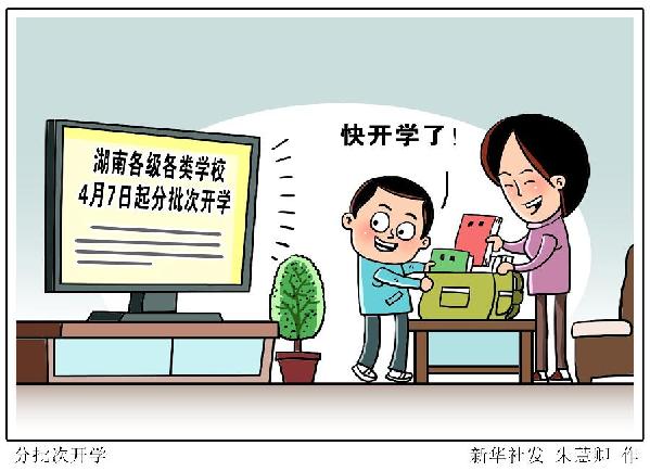 新華社長(zhǎng)沙3月28日電(記者袁汝婷)湖南省教育廳27日晚通報(bào),經(jīng)湖南省委、省政府同意,全省高三年級(jí)、初三年級(jí)于4月7日開(kāi)學(xué)。之后,湖南各市州根據(jù)本地疫情情況,按照中學(xué)其他年級(jí)、小學(xué)、幼兒園的順序,明確轄區(qū)各縣市區(qū)中小學(xué)其他年級(jí)和幼兒園錯(cuò)時(shí)錯(cuò)峰開(kāi)學(xué)時(shí)間。高校在其所在城市的中小學(xué)基本開(kāi)學(xué)后開(kāi)學(xué)。
