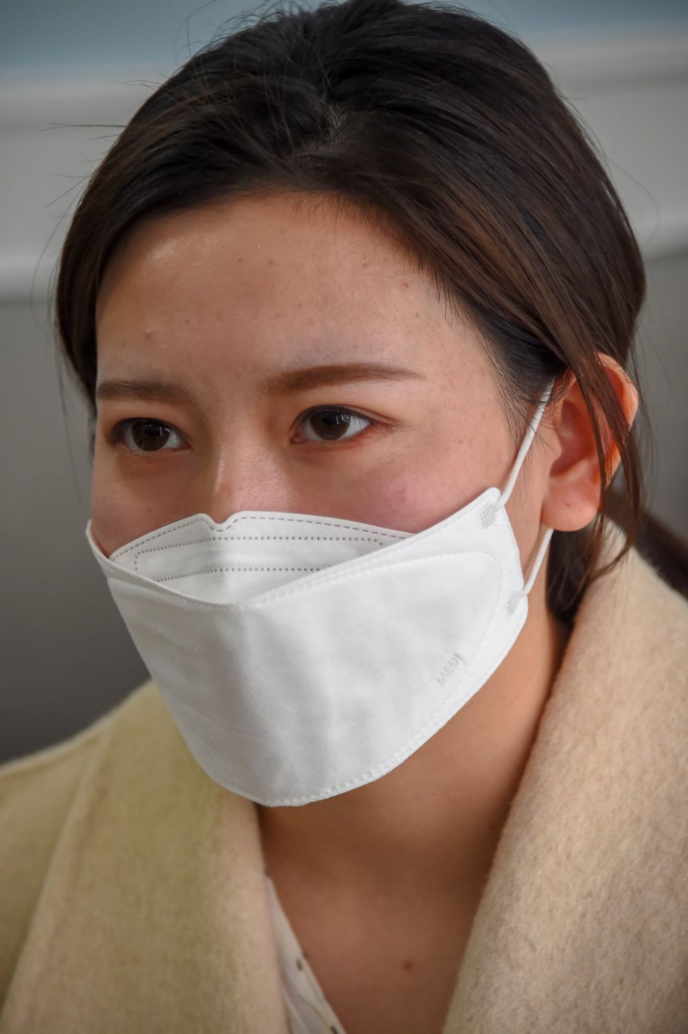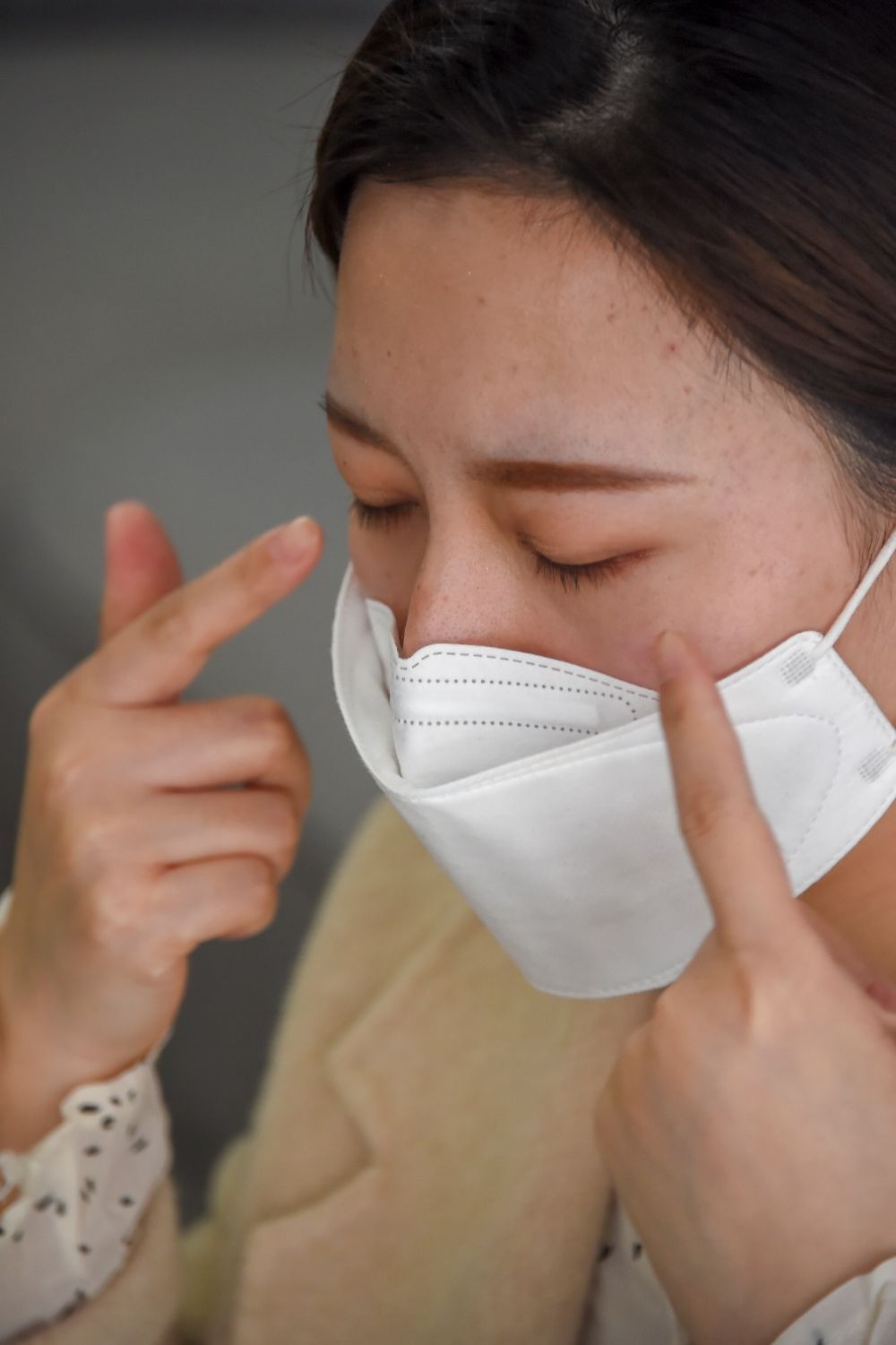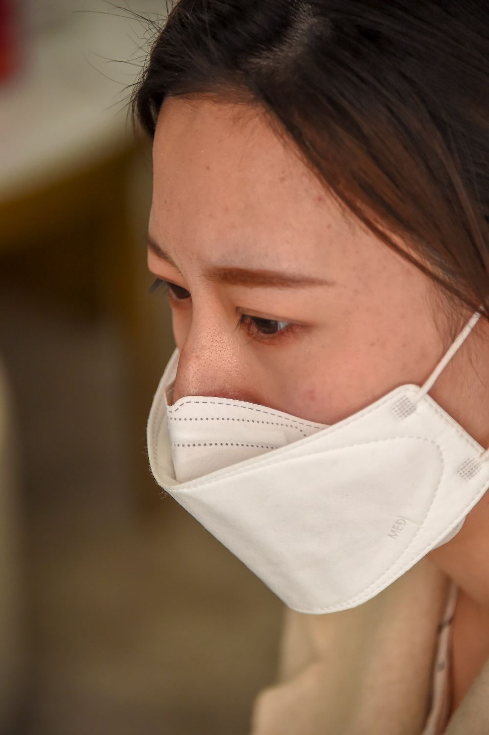 她脫下口罩的樣子