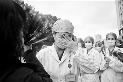 3月30日早上,北京醫(yī)療隊(duì)醫(yī)生張捷最后一次走進(jìn)了武漢的隔離病房,除去例行查房,他還要向患者們告別。一次次接受著“能回家了,替你們高興”的祝福,一遍遍囑咐著康復(fù)中的注意事項(xiàng)。原本半個(gè)小時(shí)的查房,一個(gè)半小時(shí)才結(jié)束,走出來時(shí),張捷的眼眶濕漉漉的。
