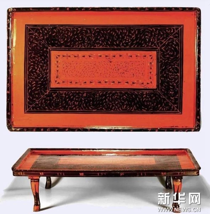 ↑漢代漆食案(江蘇揚(yáng)州)