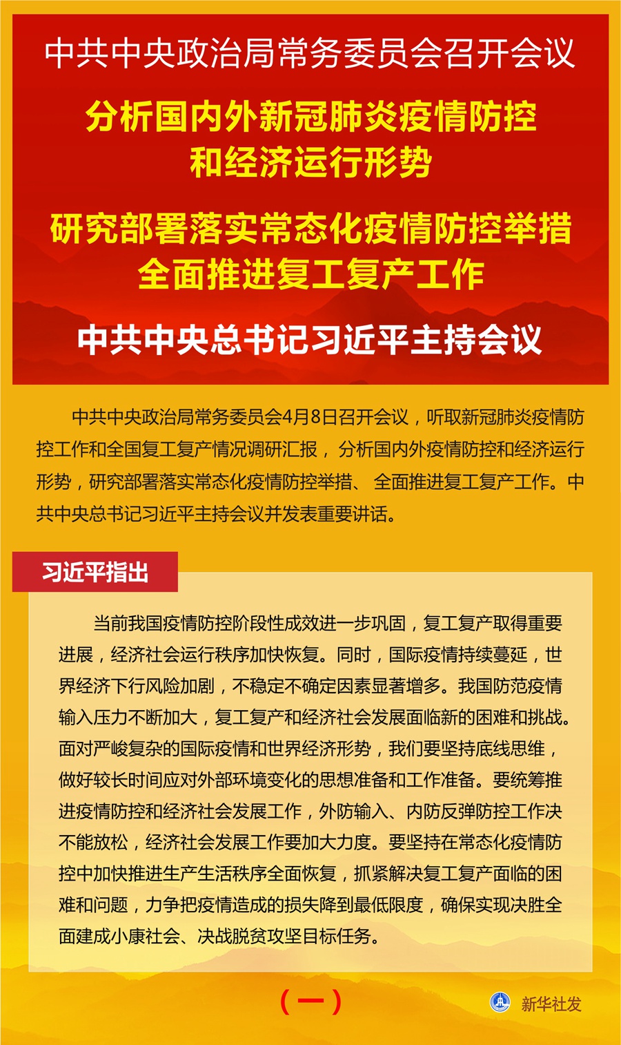 中共中央政治局常務委員會召開會議 分析國內外新冠肺炎疫情防控和經濟運行形勢 研究部署落實常態(tài)化疫情防控舉措全面推進復工復產工作 中共中央總書記習近平主持會議