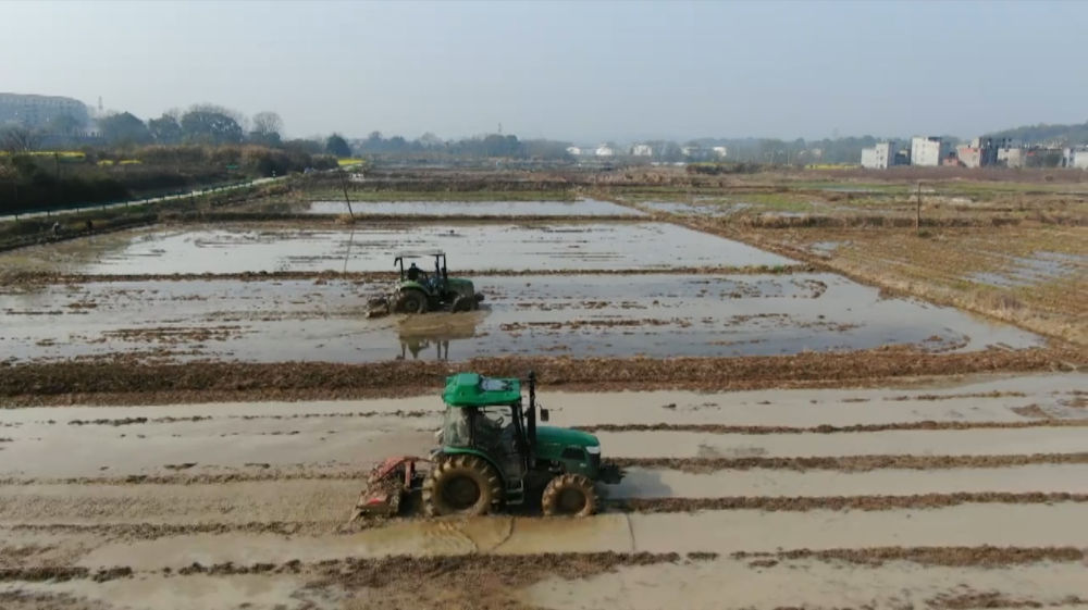 在江西省九江市柴桑區(qū)獅子街道龍崗村,種糧大戶(hù)閆正東正在進(jìn)行早稻田翻耕。(受訪者供圖)
