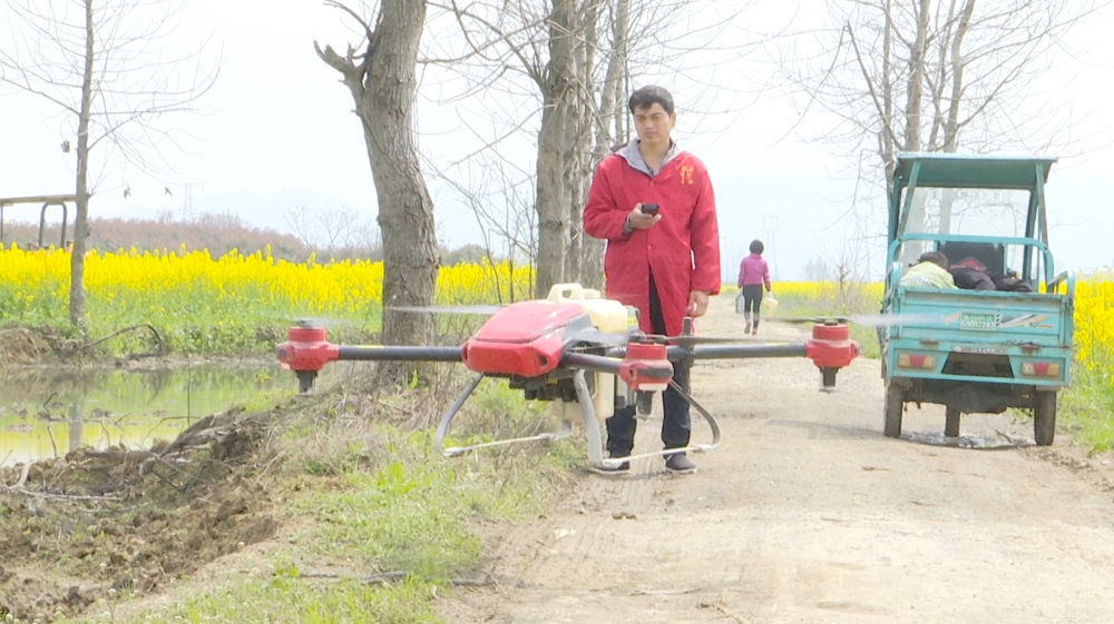 在柴桑區(qū)曹氏家庭農(nóng)場(chǎng),農(nóng)場(chǎng)主曹敬民正熟練地操作植保無(wú)人機(jī)。曹敬民告訴記者,這次疫情對(duì)農(nóng)場(chǎng)生產(chǎn)影響較小,通過(guò)政府信息化平臺(tái)和農(nóng)技專(zhuān)家的幫扶支持,對(duì)今年農(nóng)場(chǎng)增收充滿信心。